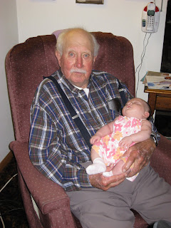 I've been having a pretty hard time with the whole thing. I'm very grateful that he was able to meet my Mara, and he seemed to have a very soft spot in his heart for her. I am sad that she won't have a chance to really get to know him, but so grateful that they were able to meet, and they spent quite a bit of time together in the short time they knew each other. You'd think that after 22 grandchildren and 25 great-grandchildren, that the novely of a new baby would wear off, but he (and my Grandma) loved Mara like she was the very first. I know that Mara brightened some of his days at the nursing home, and I'm happy she was able to do that. Although she won't remember him, she will grow up hearing stories about him (everyone has a great story about him!).